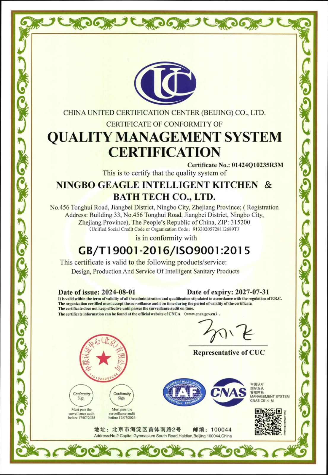 Established in 2001, Ningbo Geagle Intelligent Kitchen & Bath Tech Co., Ltd specializing in the research and development, as well as production the core components of intelligent kitchen and bath wares. Geagle integrates design, research development and manufacturing, after more than 20 years of effort, it has made great breakthroughs on many aspects such as bistable solenoid valves, SCM intelligent controls, infrared sensors, ultra-low power consumption, waterproofing, water conservation, and energy conservation. Geagle has obtained more than 30 invention patents, utility model patents, and appearance patents in intelligent toilet flushing valves, constant pressure and constant flow valves, solenoid valves, infrared controls, waterproof connectors, hand dryers, intelligent faucets, manual and sensor combined kitchen faucets, water-replenishing environmentally-friendly floor drains, and other aspects. Currently, Geagle has more than 100 application products and core components in over ten series, includings manuals and sensor combined kitchen faucets, sensor faucets, toilet flushing systems, automatic hand dryers, automatic soap dispensers, automatic fragrance sprayers, shower-heads, water-replenishing floor drains, etc. With 20 years of technical research and development strength in the industry and a rigorous quality management system, the company adheres to the business philosophy of professionalism, focus, and dedication, and strives to pursue maximum customer satisfaction.