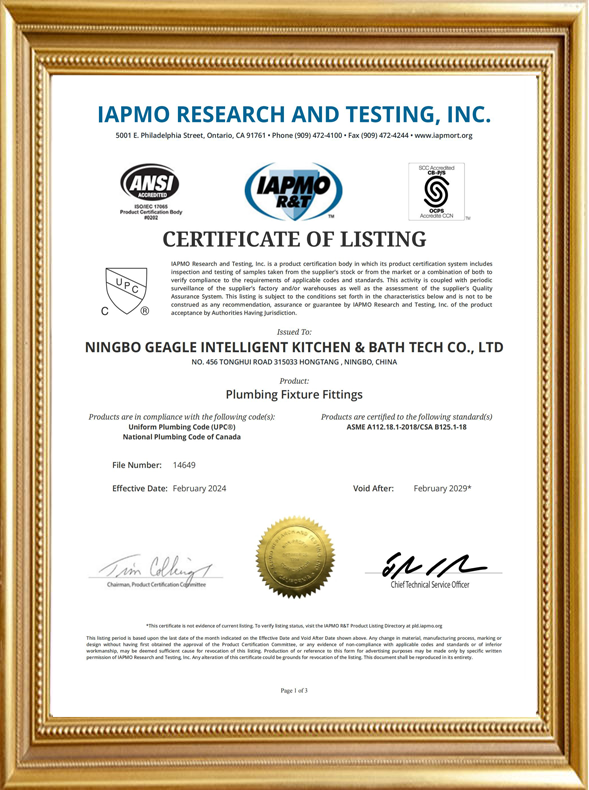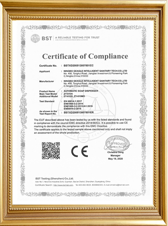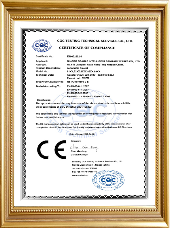 自动水龙头控制系统 CE 证书